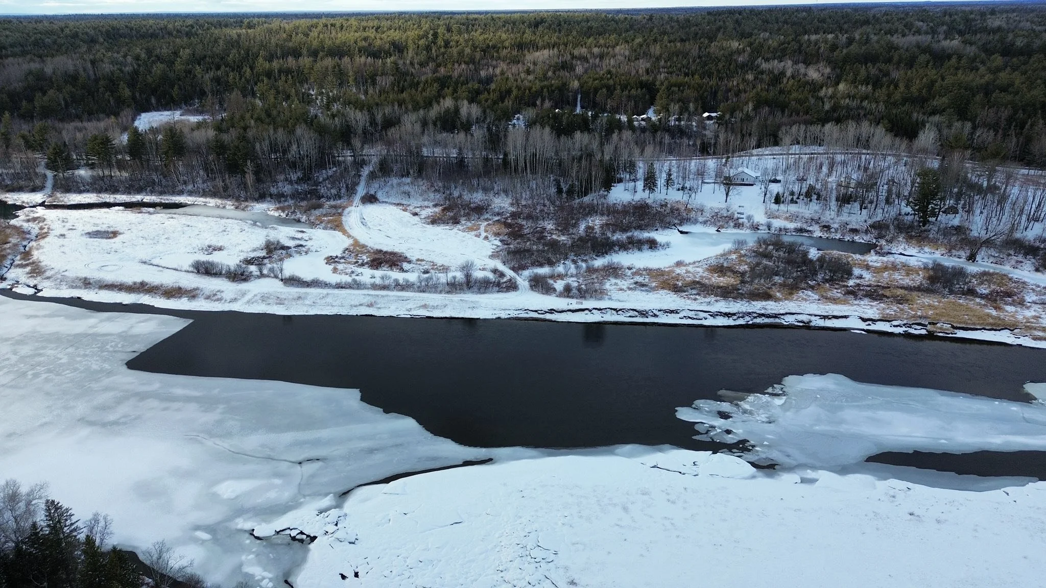 You can now check river conditions anytime with our live cam, giving you a real-time look at water levels, ice movement, and weather right from the lodge.